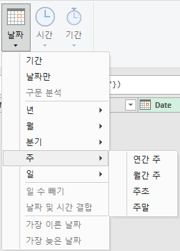 [변환] / [열추가] 탭내 날짜 관련 작업이 가능하도록 기능이 활성화 됨.