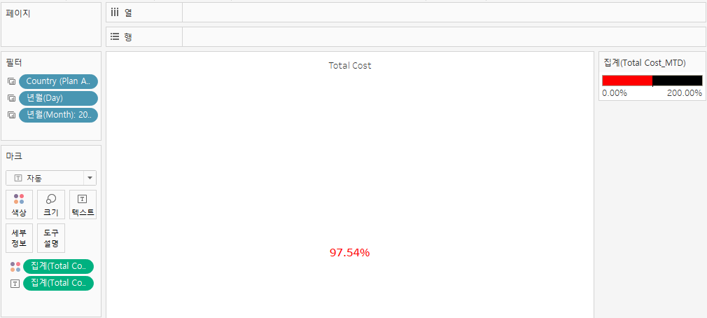 [마크>텍스트]로 해당 정보 이동 후 해당 정보 [우클릭>서식>패널>기본값>숫자>백분율] 선택하여 달성률 노출