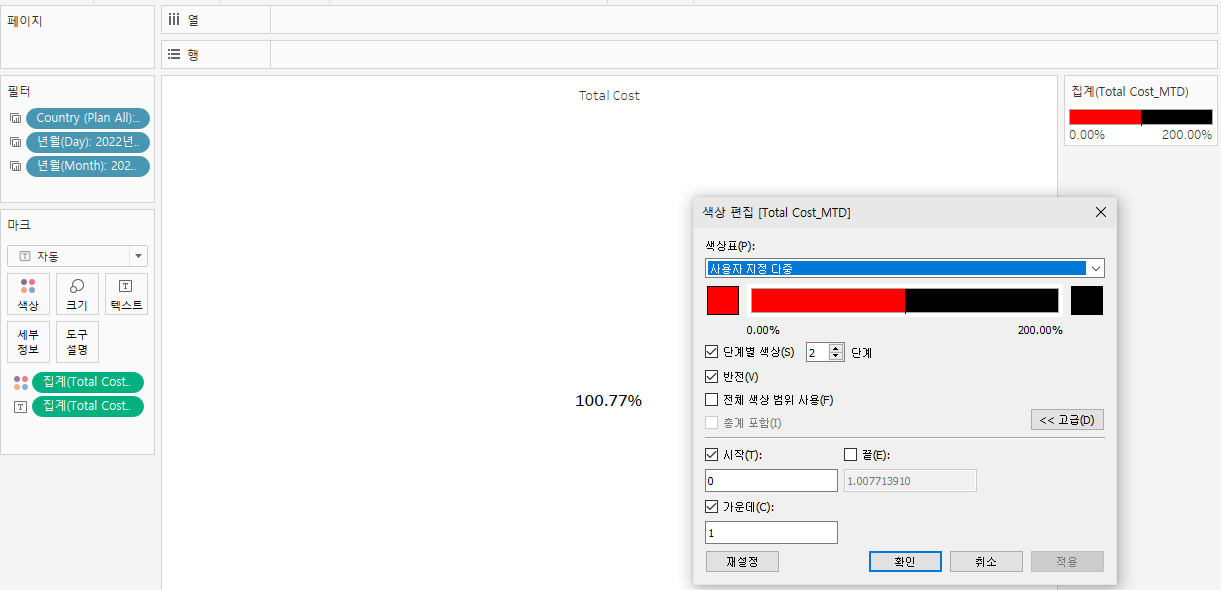 계산된 필드(달성률) 생성 후,