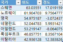 3. 이상없이 데이터가 불러와졌다면, 날씨 확인이 필요한 지역의 위/경도 정보 쿼리로 생성